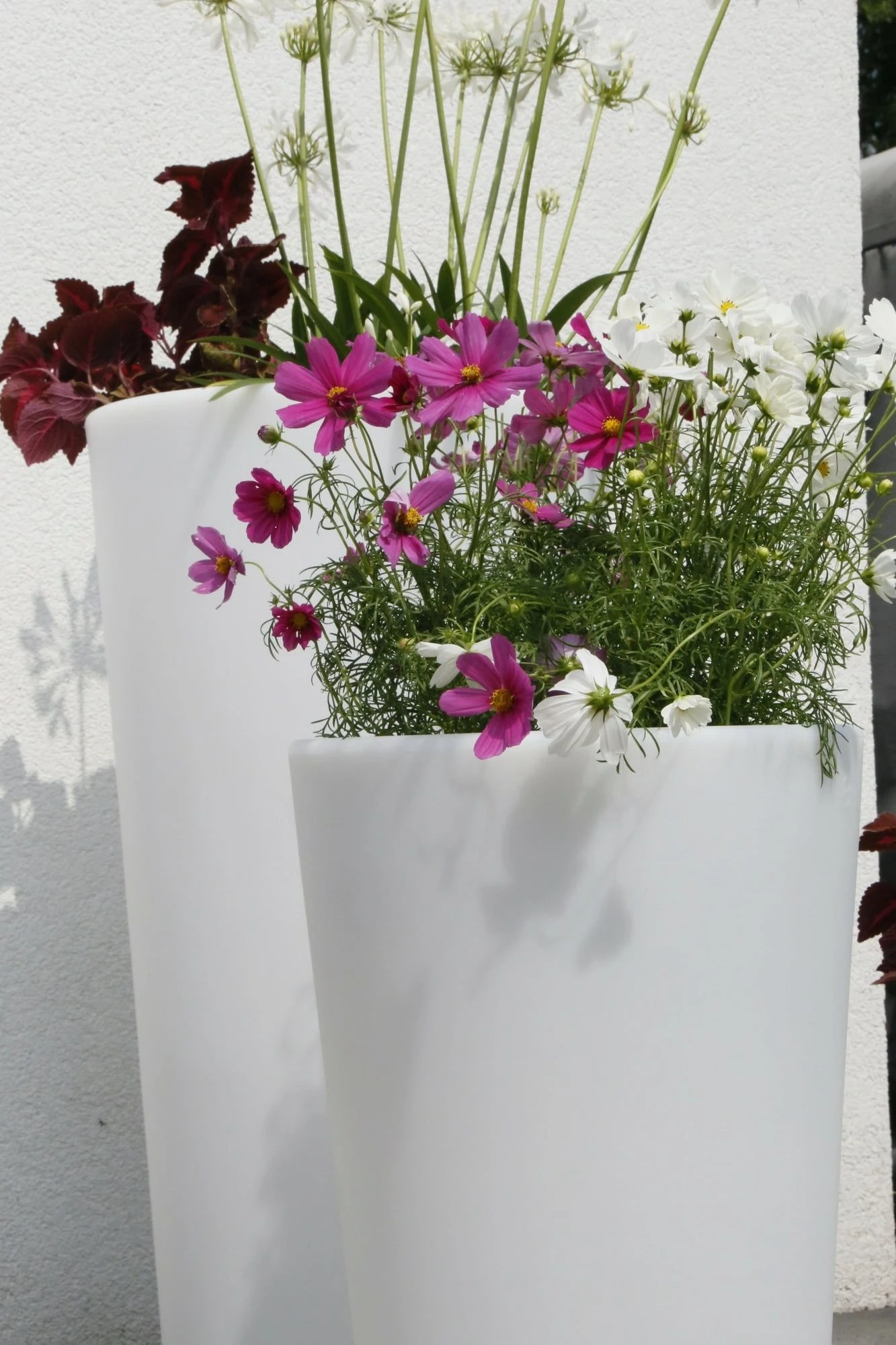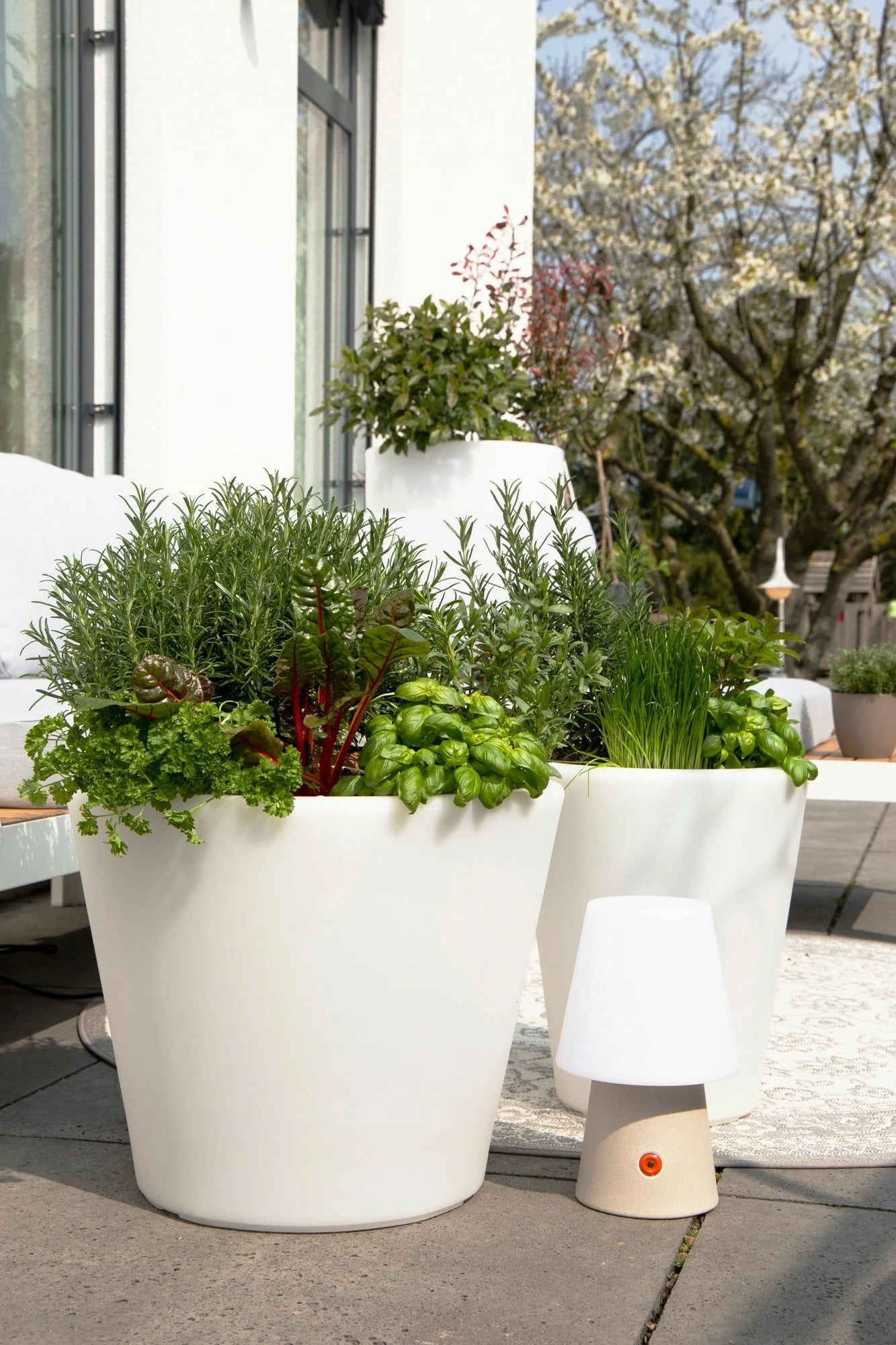 Die „Shining Pots“ von 8seasons design sind Designer-Pflanztopf und leuchtendes Deko-Highlight in einem. Egal ob im Wohnbereich, auf der Terrasse oder im Garten – die beleuchteten Pflanzgefäße machen einfach überall eine gute Figur. Klassische Form, zeitloses Design und hochwertige Material- und Verarbeitungsqualität machen sie zu absoluten Lieblingsstücken, die für ein wunderbar stimmungsvolles Ambiente sorgen und gleichzeitig deine Pflanzen gekonnt in Szene setzen. Besonders praktisch: Ein intelligentes Ablaufsystem sorgt auf Wunsch dafür, dass überschüssiges Gießwasser nach unten abfließen kann.