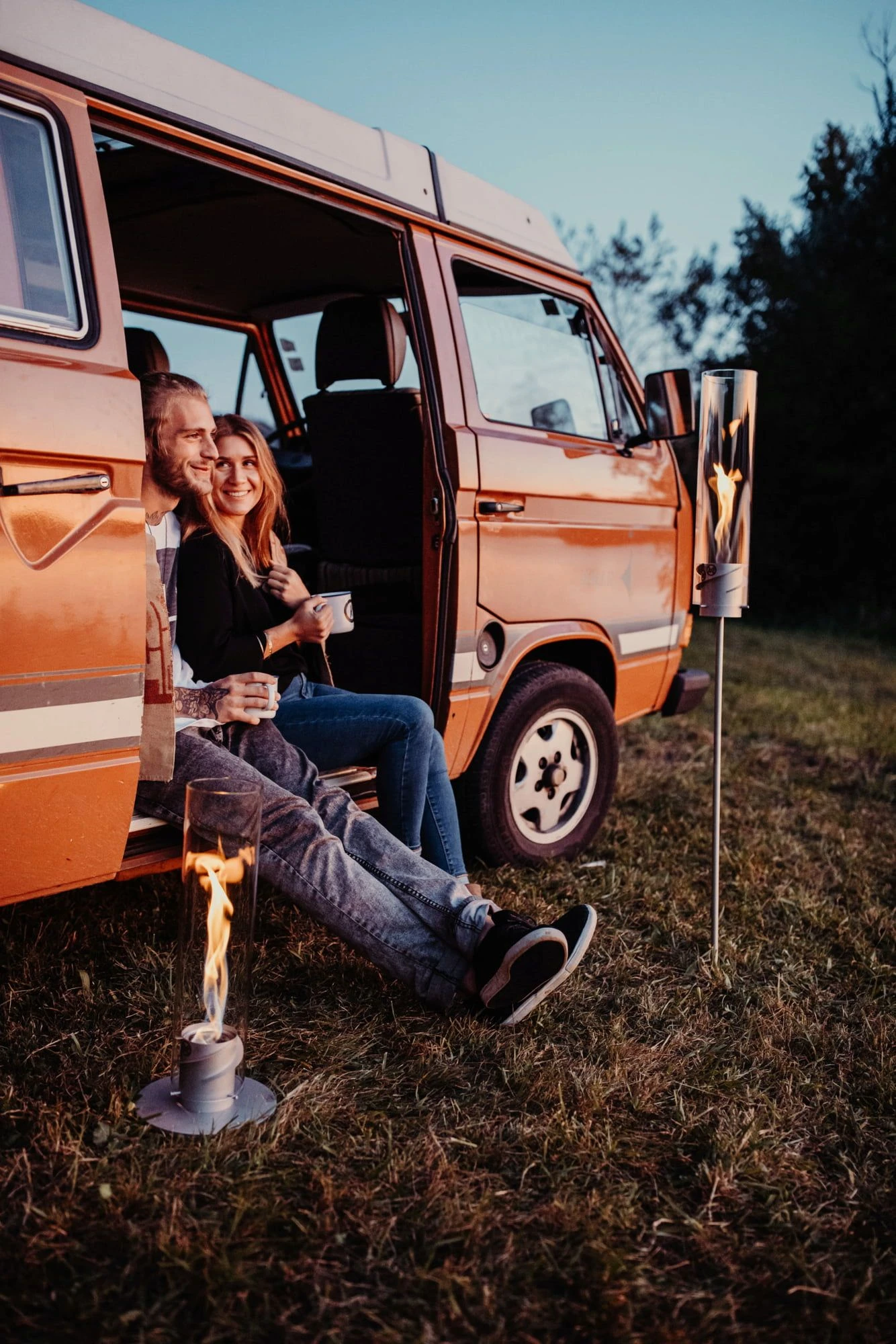 Die Befeuerung gelingt denkbar einfach: Fackel in die Erde stecken, Bio-Ethanol-Dose in den Fuß einsetzen, entzünden und Glaszylinder aufsetzen. Schon rotiert die Flamme und sorgt bis zu 80 Minuten für ein gemütliches Wohlfühl-Ambiente.