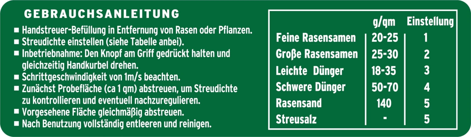 Der praktische Handstreuer sollte in keinem Garten fehlen. Damit geht das Säen und Düngen auch bei verwinkelten Rasenflächen ganz einfach und bequem. Nicht mehr wegzudenken.