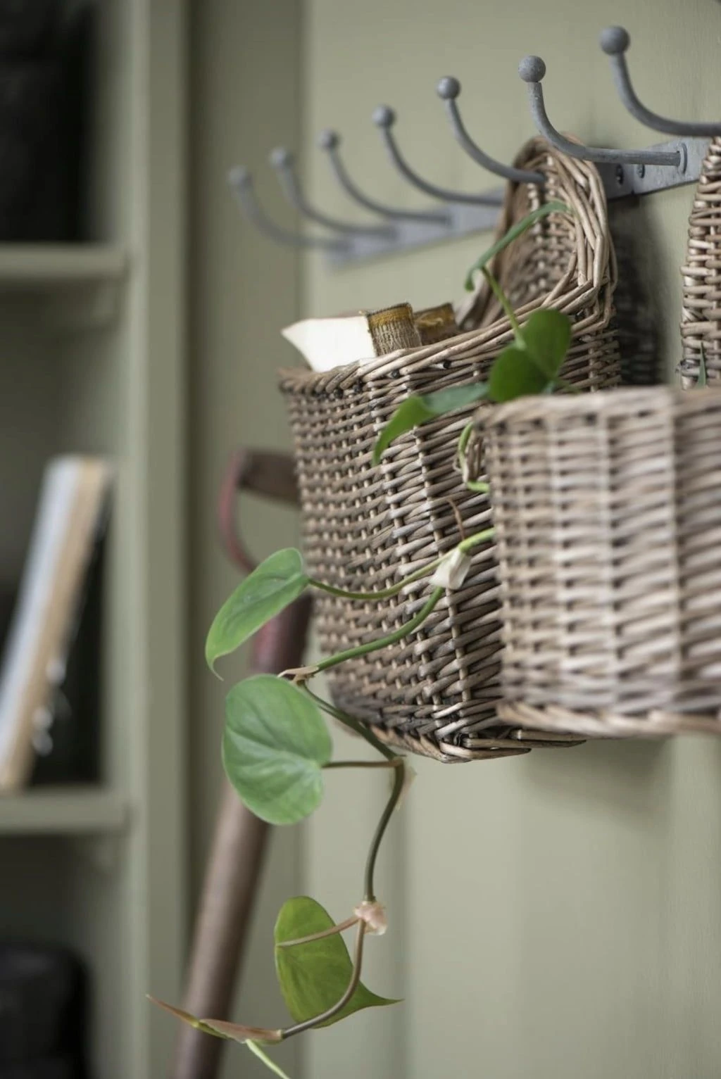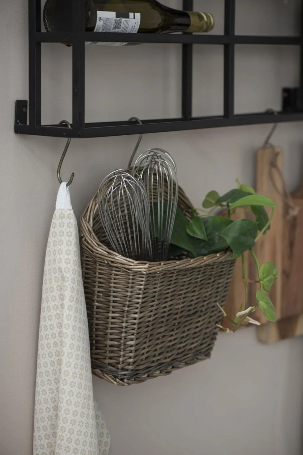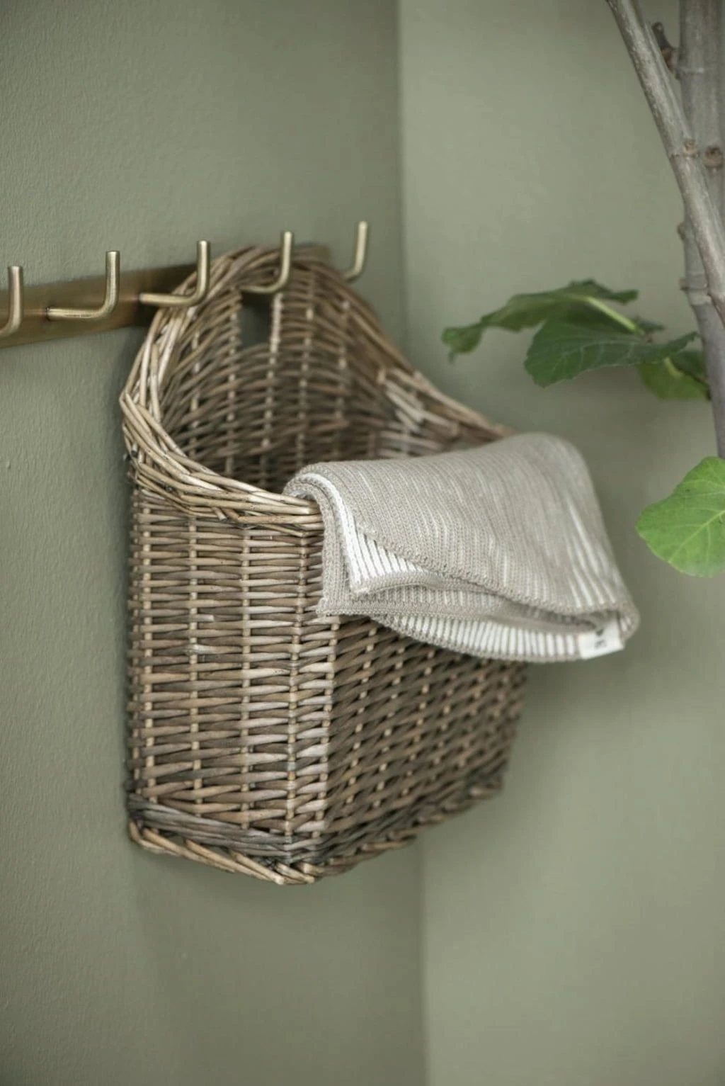 Dieser wunderschöne Wandkorb wurde aus Wollweide geflochten und passt mit seinem natürlichen Charme einfach zu jedem Einrichtungsstil. Egal ob zur Aufbewahrung von Küchenhelfern oder um Mützen und Handschuhe im Flur griffbereit zu halten – dieser bezaubernde Korb lässt sich einfach an einem Haken befestigen und sorgt in jedem Raum für praktischen Stauraum.