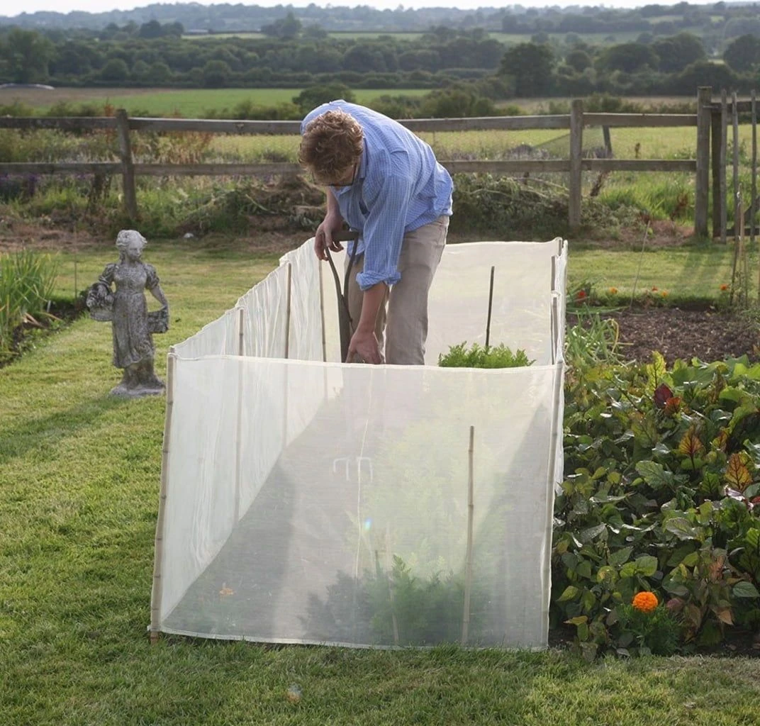 Dicht gewebt ist dieses nur 0,6 mm dünne Netzt mit integrierten Bambusstützen, die angepasst werden können, um verschiedenste Grundstücke und Beete einzuzäunen. Das Gewebe ist lichtdurchlässig und lässt genügend Wasser durch, damit die Pflanzen nicht austrocknen. Der Wind- & Wetterschutz ist nicht nur ideal für ungemütliche Wetterkapriolen, sondern schützt Ihr Beet auch vor Haustieren und tieffliegenden Schädlingen. Besonders bewährt hat sich der Wind- & Wetterschutz vor allem beim Einsatz gegen die Möhrenfliege.