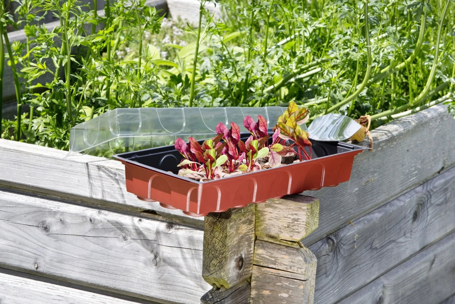 Die terracotta-farbige, robuste Kunststoffschale mit Klarsichthaube bietet ideale Bedingungen für die eigene Anzucht. Das entstehende Treibhausklima sorgt dafür, dass Keimlinge zeitiger und besser gedeihen.
