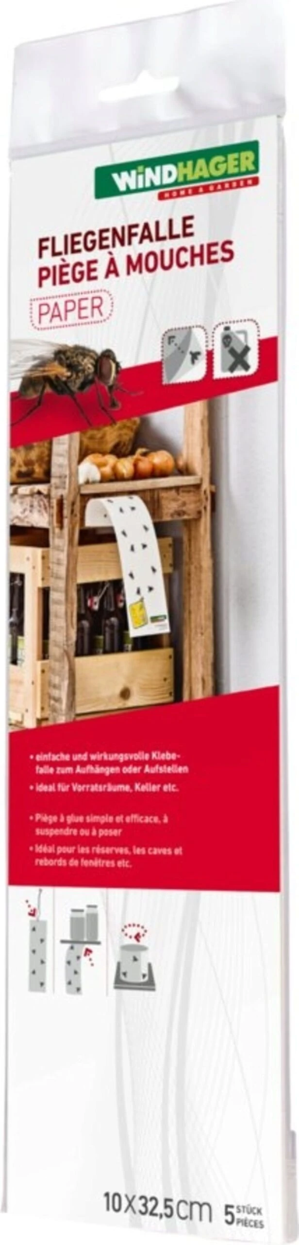 Info: Nach ein paar Wochen oder wenn sich viele Insekten auf dem Papier befinden, sollte die Falle ausgetauscht werden. Außer Reichweite von Kindern und Haustieren anbringen.