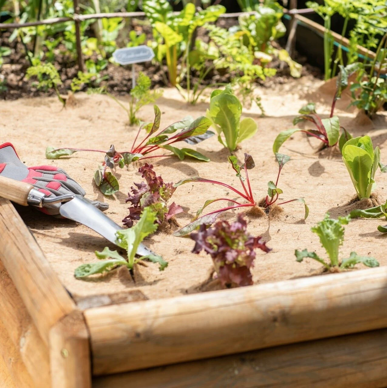 Diese Mulchmatte aus natürlichem Jutevlies fördert das Wachstum deiner Pflanzen im Hochbeet, während sie gleichzeitig das Unkrautwachstum hemmt. Lege sie einfach auf das Hochbeet, führe an den Stellen, an denen die Pflanzen herauswachsen sollen, einen Kreuzschnitt durch und fixiere die Seiten der Matte am Boden. So schaffst du die idealen Wachstumsbedingungen für Pflanzen im Hochbeet.