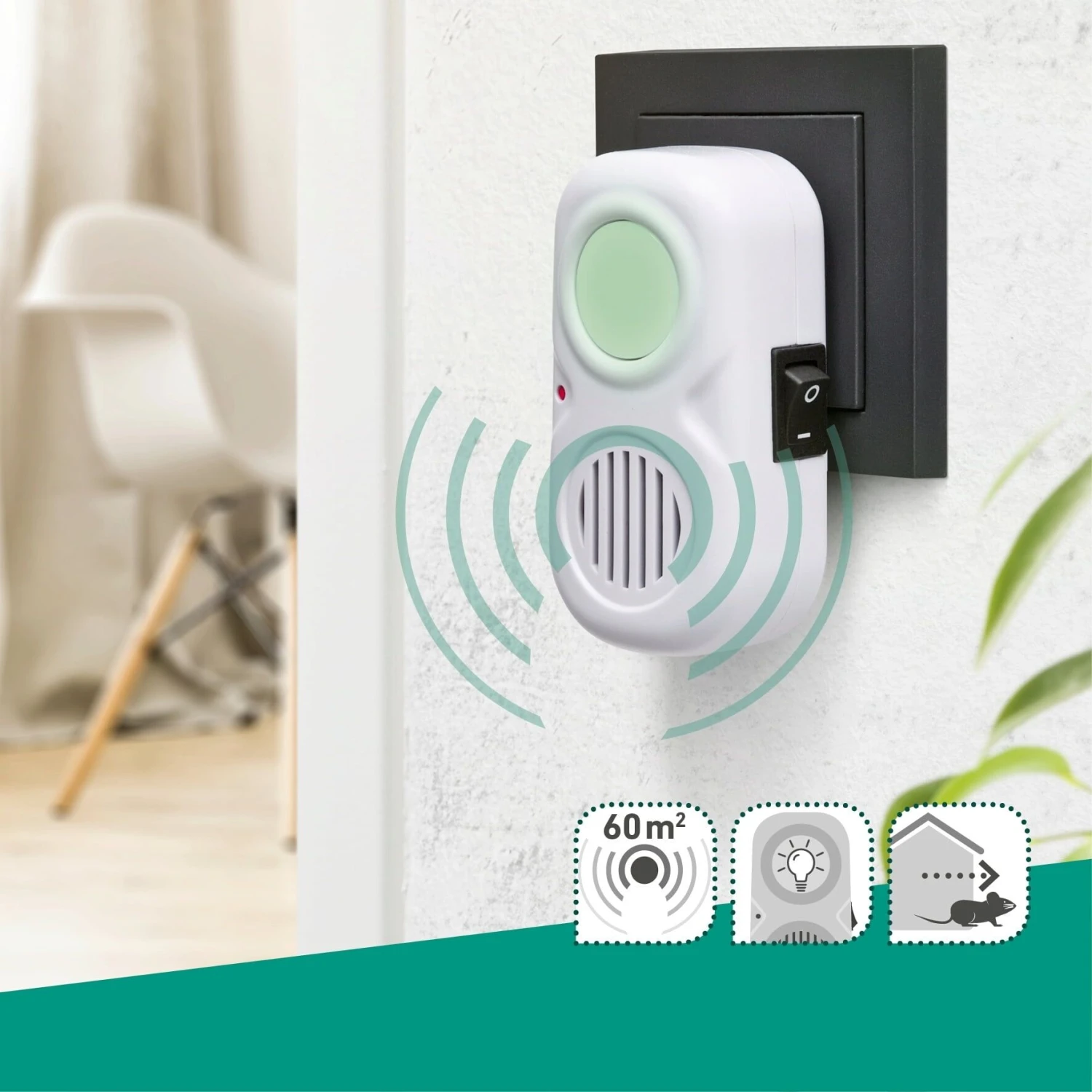 Der geniale Mausvertreiber ist ganz einfach in der Steckdose anzubringen und verscheucht Mäuse durch die hohen Töne die durch unregelmäßigen Intervalle im Ultraschallbereich ausgesendet werden. Für die Menschen ist es ungefährlich, Mäuse hingegen laufen weg, da der für sie sehr schrille Ton in deren Ohren sehr eindringlich ist.