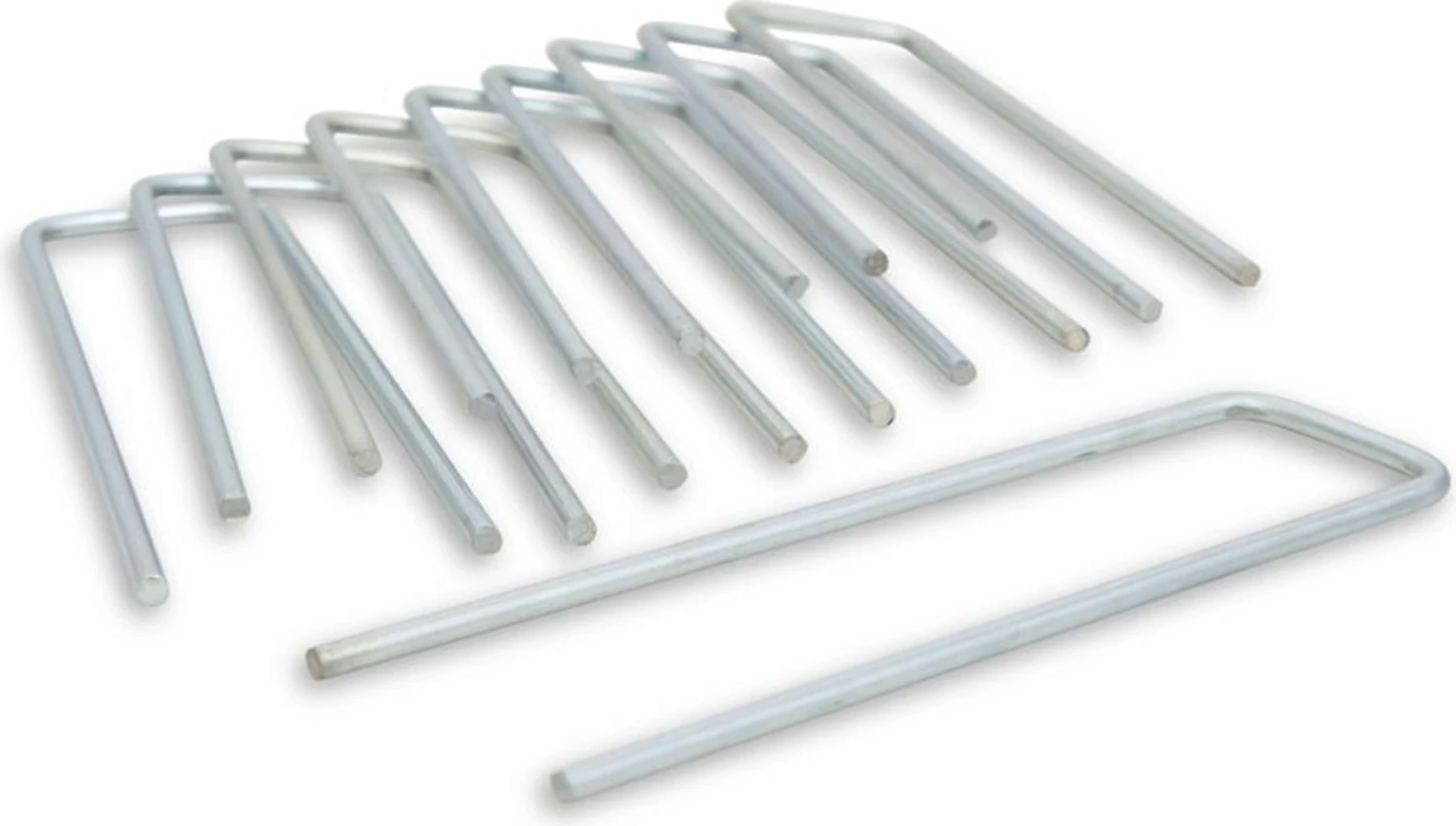 Ein absolut nützliches und bewährtes Zubehör für Gartenvliese und Folien. Die Metall-Heringe aus verzinktem Metall sorgen für eine stabile Befestigung im Erdreich. Langlebig und wiederverwendbar.
