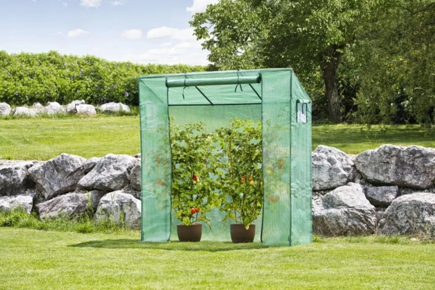 Das Tomatengewächshaus mit Gitterfolie sorgt für ein wachstumsförderndes Treibhausklima und bietet einen zuverlässigen Schutz vor Braunfäule, die oft durch Niederschläge verursacht wird.