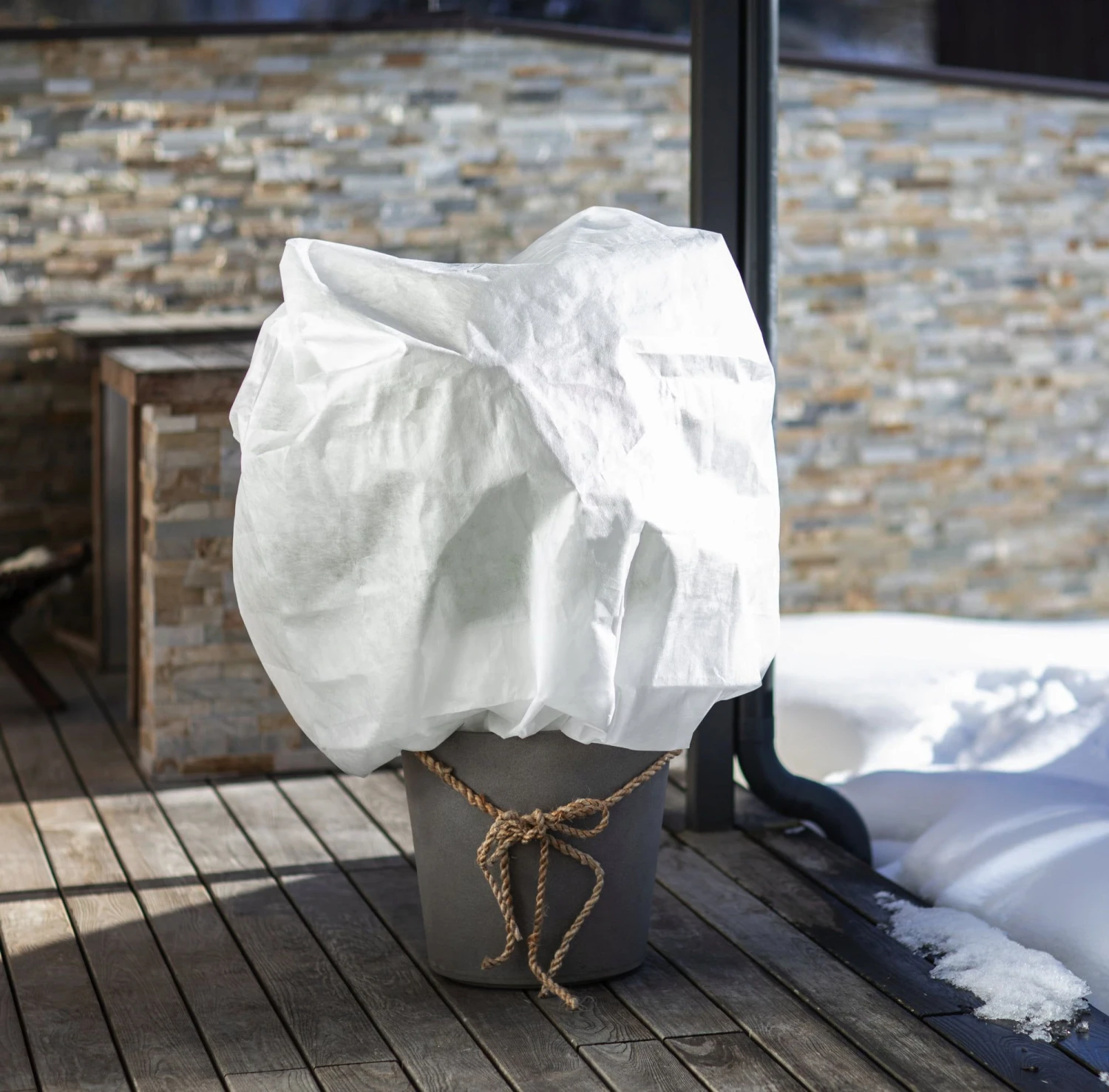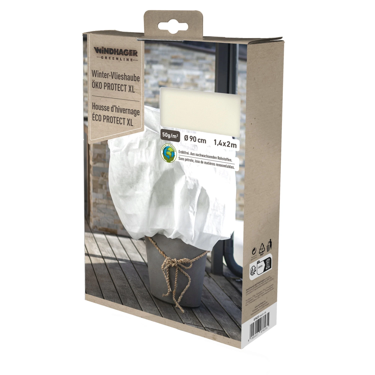 Diese Öko-Wintervlieshaube ist eine besonders nachhaltige und umweltfreundliche Art, deine Topfpflanzen sowie Sträucher im Winter vor Kälte, Wind und Austrocknen durch Sonneneinstrahlung zu schützen, denn sie wird erdölfrei aus nachwachsenden Rohstoffen hergestellt. Auch ihre Anbringung ist denkbar einfach: Stülpe sie einfach über die Pflanze und befestige sie mit einer Bindeschnur. Schon sind deine Pflanzen für die kalte Jahreszeit gerüstet.