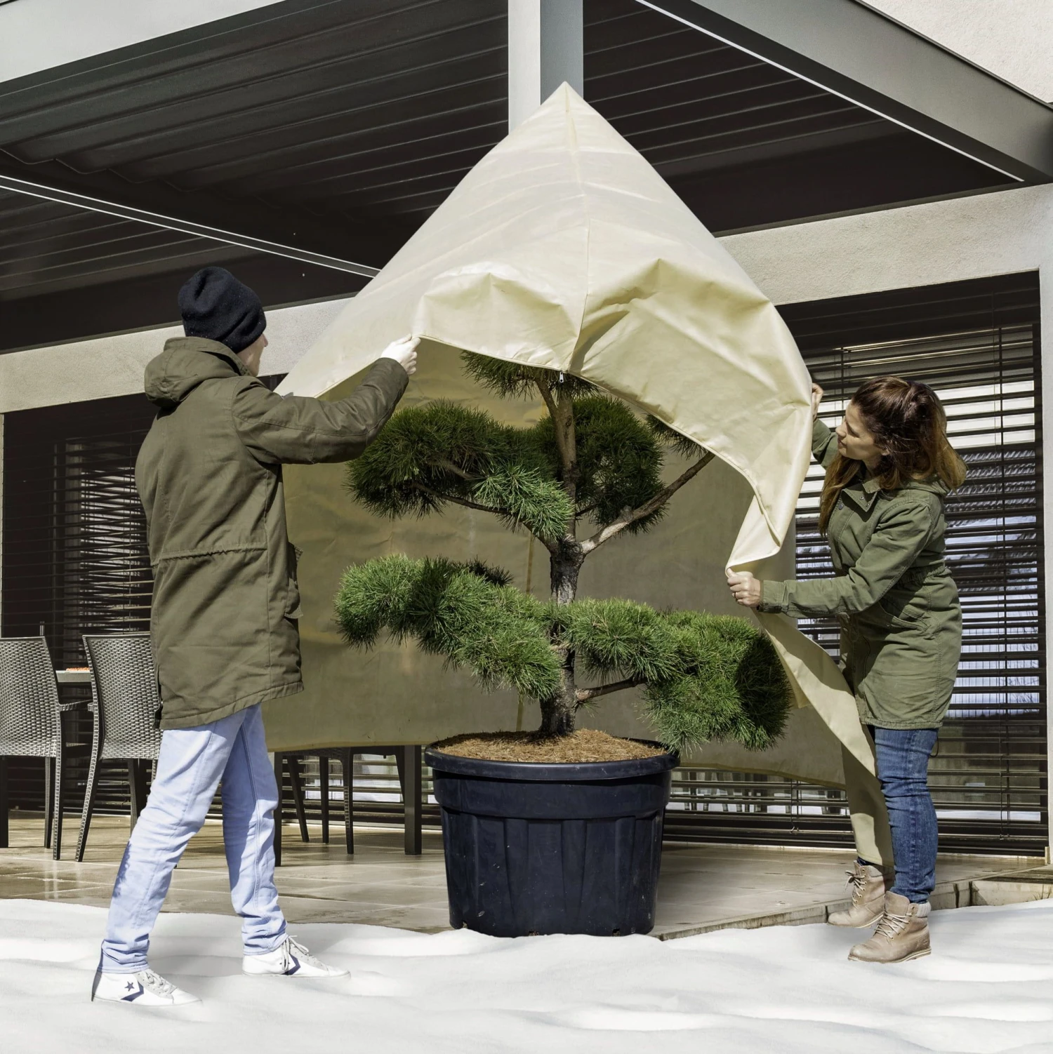 Diese XXL-Vlieshaube ist perfekt, um größere Pflanzen mit ausladenden oder buschigen Kronen vor Minusgraden zu schützen. Auch das Anbringen der Haube ist denkbar einfach: Lege sie einfach um die Pflanze, ziehe den Reißverschluss von unten nach oben zu und schließe bei Bedarf die obere und untere Kordel. So geschützt überstehen deine Pflanzen die kalte Jahreszeit unbeschadet und können sich im Frühling wieder in voller Pracht zeigen.