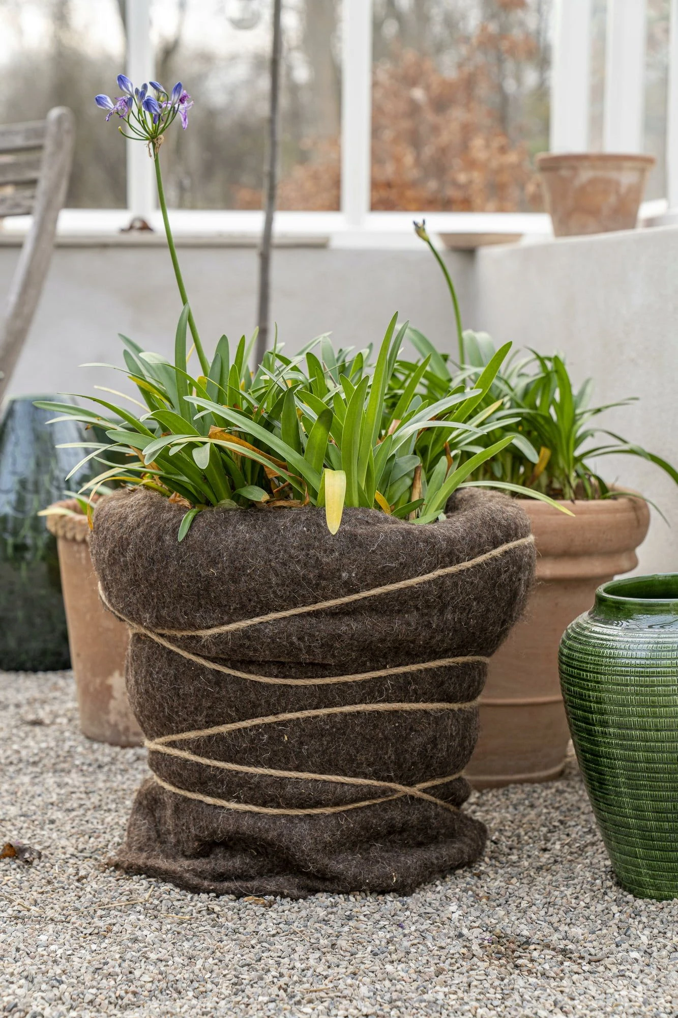 Die Winterschutz Wollmatte ist ein reines Naturprodukt und kann dekorativ um Töpfe und Pflanzen gewickelt werden, um diese vor Frost zu schützen. Auch bewahrt sie Pflanzen vor dem Austrocknen und wirkt Unkrautwuchs entgegen.